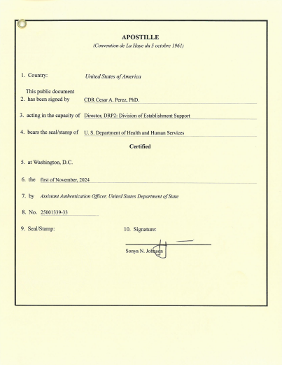 The U.S. Department of State issues apostilles for documents originating from federal entities (such as the FDA, FBI, USPTO, or any other federal entity) for use in Hague Convention countries .